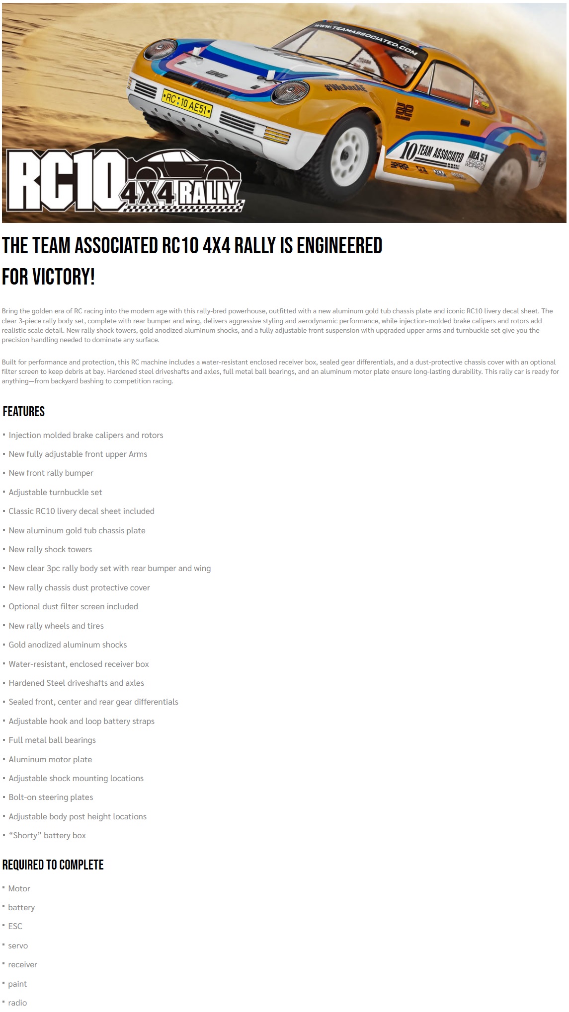 Team Associated RC10 4x4 1/10 Electric Off-Road Rally Kit