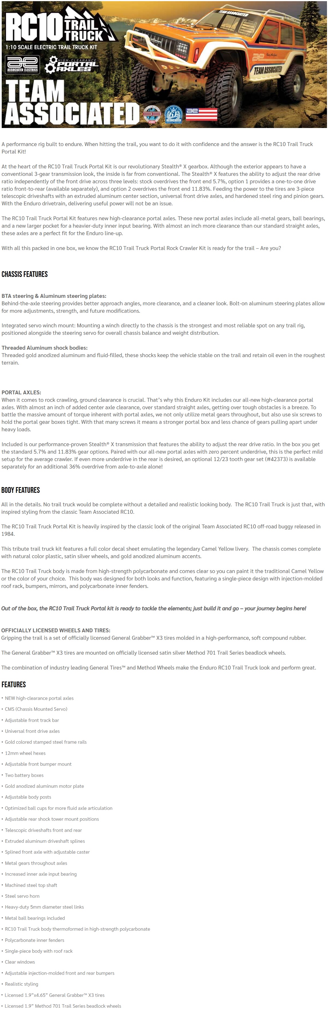 Team Associated RC10 Trail Truck 1/10 4x4 Scale Rock Crawler Kit w/Portals