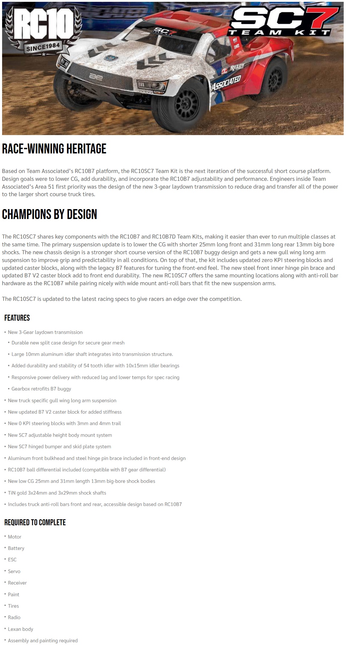 Team Associated RC10SC7 1/10 Off Road Electric 2WD Short Course Truck Team Kit