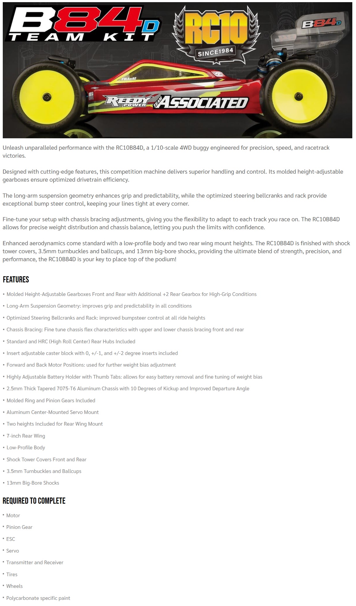 Team Associated RC10B84D 1/10 4WD Off-Road Electric Buggy Kit (Dirt)