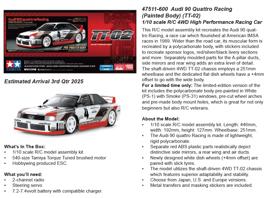 TAMIYA AUDI 90 QUATTRO RACING - PAINTED BODY (TT-02)