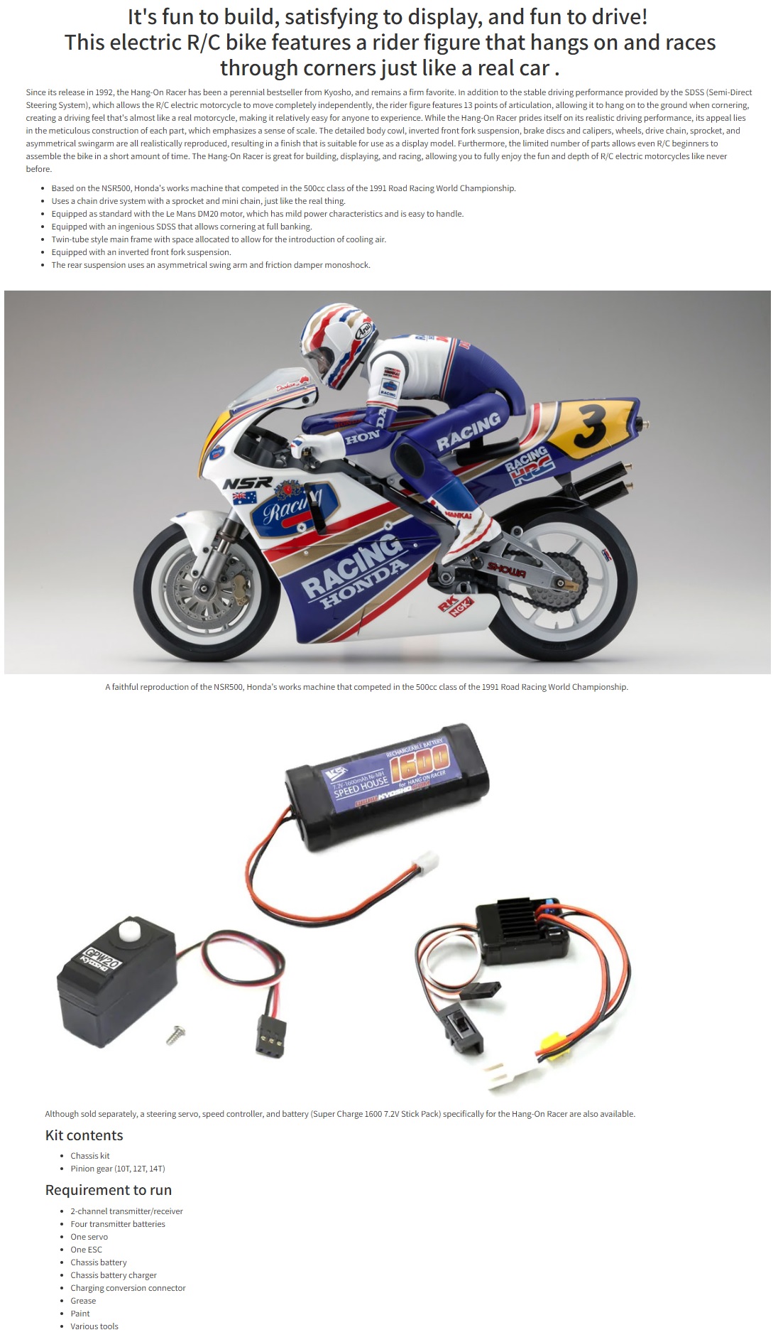 Kyosho Hang On Racer 1991 Honda NSR500 Electric 1/8 Motorcycle Kit *COMING SOON*