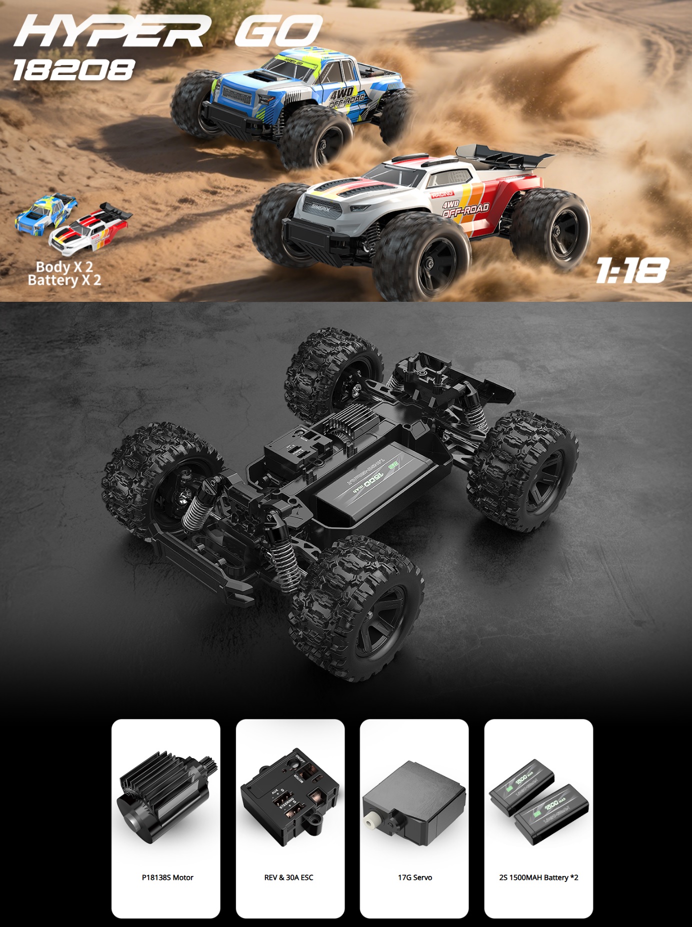 MJX 1/18 HyperGo 2.4G 4WD Brushed RTR RC Monster Truck (inc. Battery and Charger)