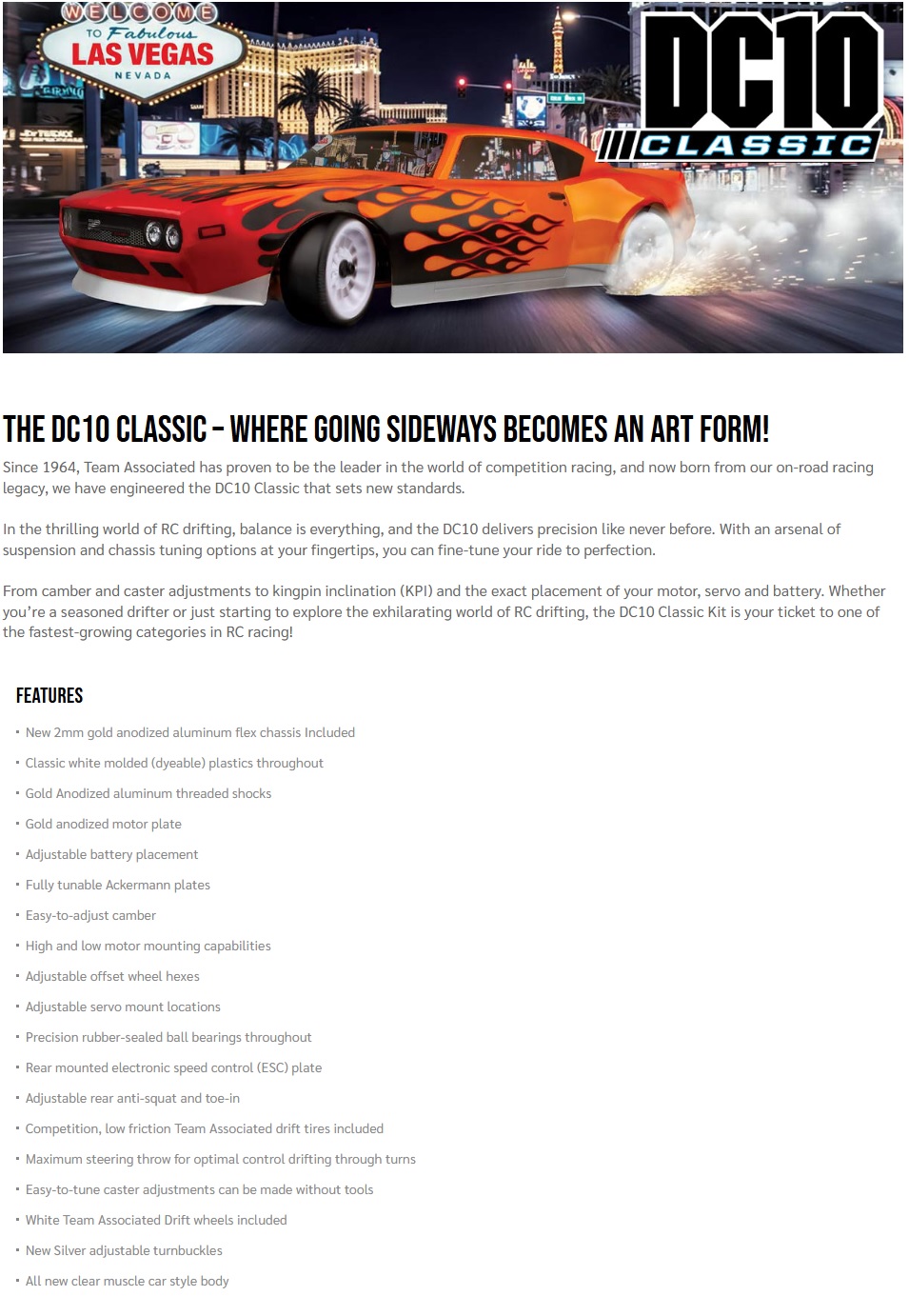 Team Associated DC10 Classic 1/10 Electric RWD Drift Car Kit (Clear) *COMING SOON*