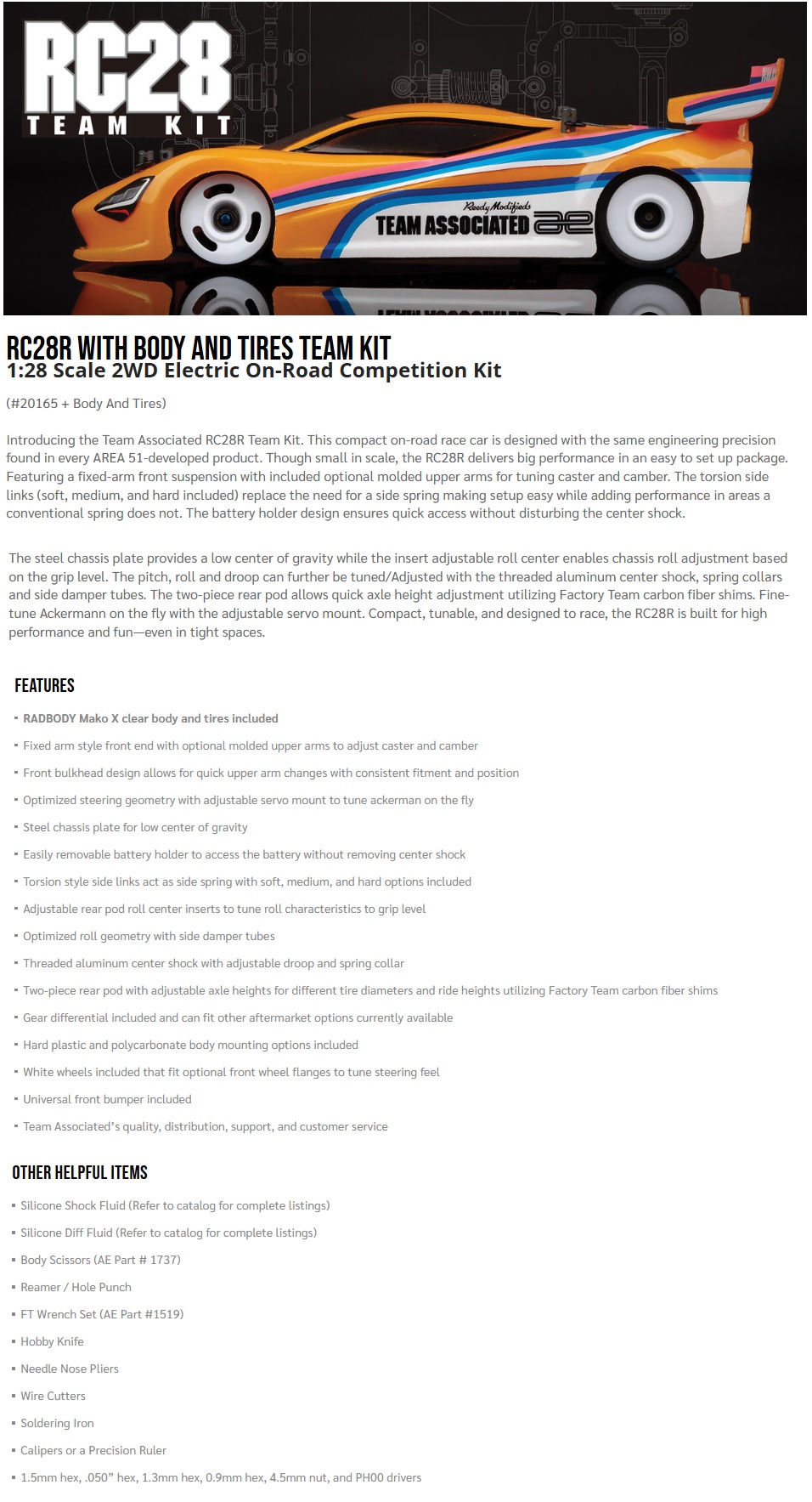 Team Associated RC28R 1/28 2WD Electric On-Road Competition Team Kit w/Mako X Body, Wheels & Tires (Clear)