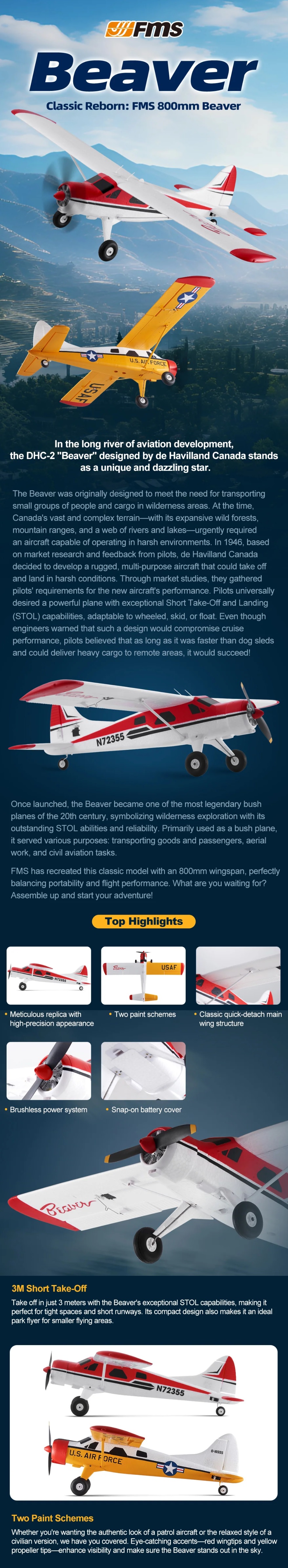 FMS RC Plane Beaver 800m RTF - Red MODE 1