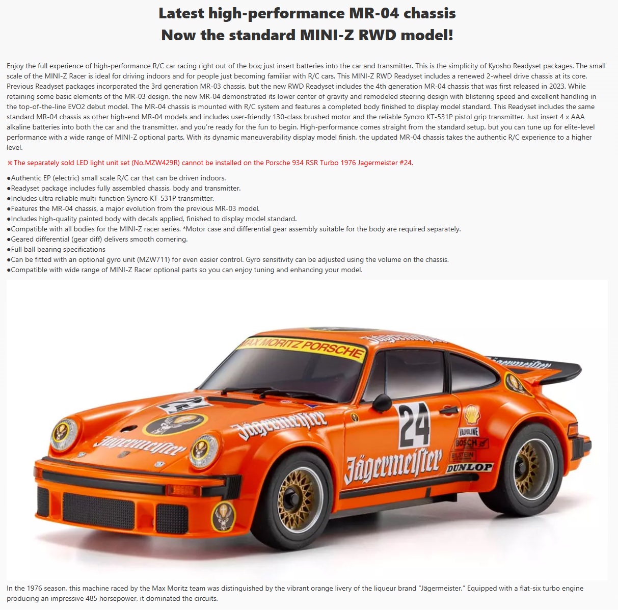KYOSHO MINI-Z RWD MR-04 Porsche 934 RSR Turbo 1976 Jagermeister RTR