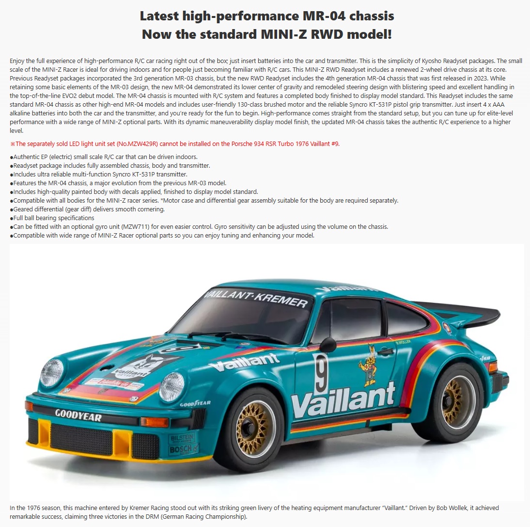 KYOSHO MINI-Z RWD MR-04 Porsche 934 RSR Turbo 1976 Vaillant RTR