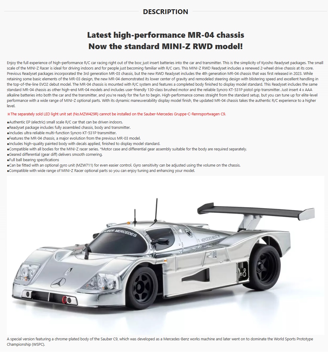 Kyosho Mini-Z Sauber-Mercedes Gruppe-C Rennsportwagen C9 Chrome MR-04